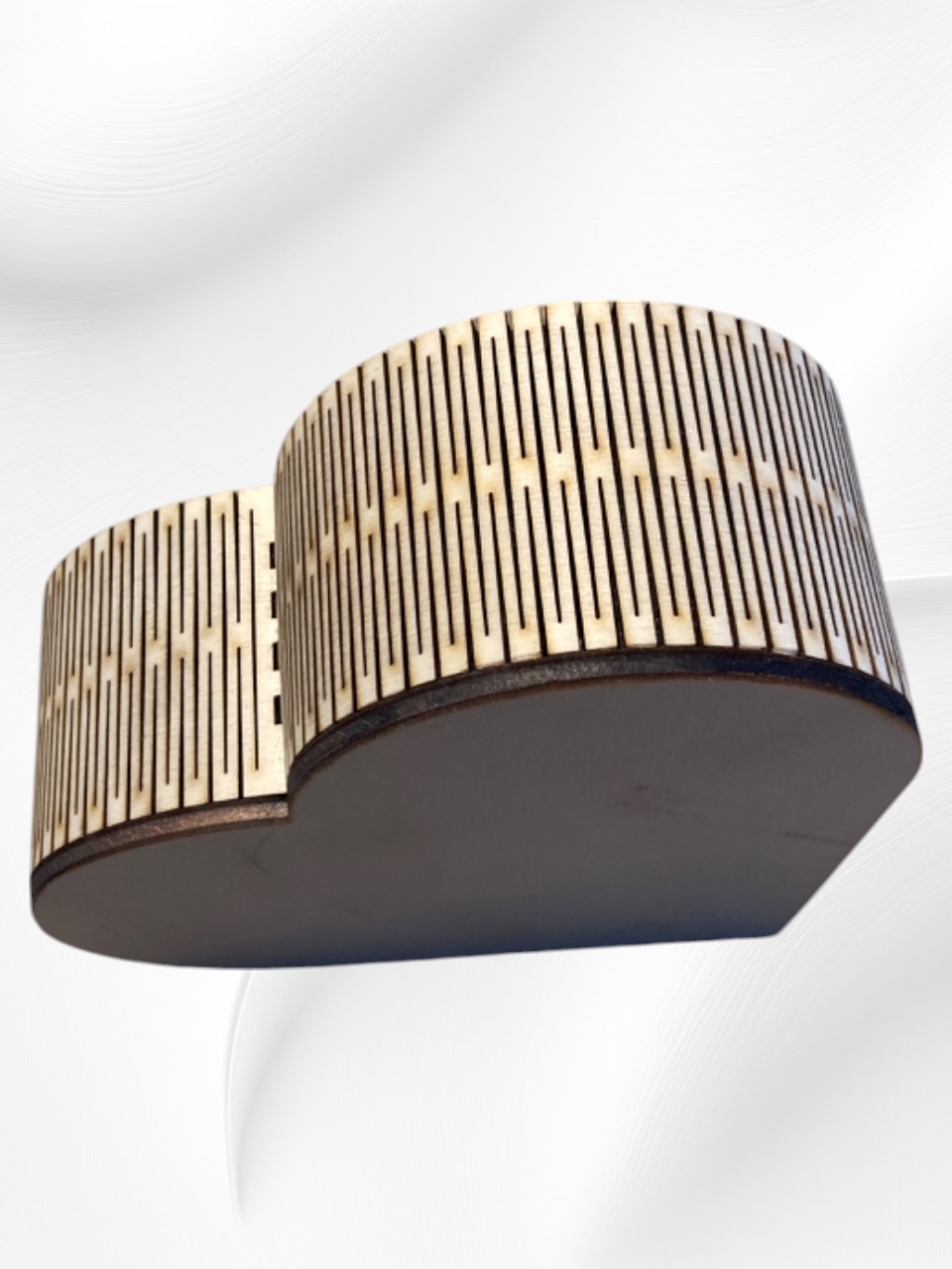 Cette boîte arbore une forme de cœur intemporelle qui évoque l’amour et l’attention. Son contour flexible, obtenu grâce à une technique avancée de découpe laser, apporte une touche de sophistication et d’originalité.