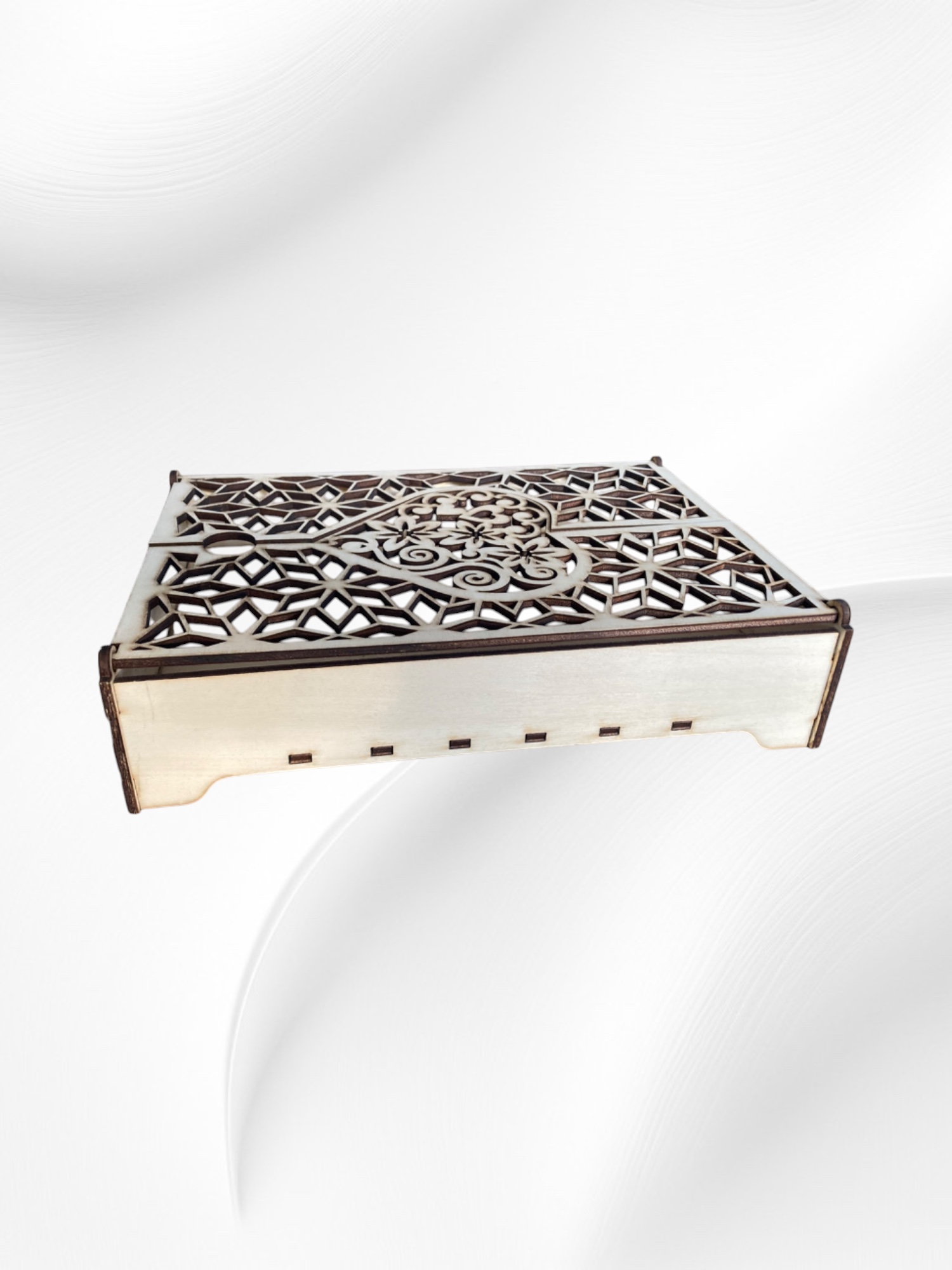 Boîte rectangulaire en bois avec couvercle ajouré : élégance et fonctionnalité