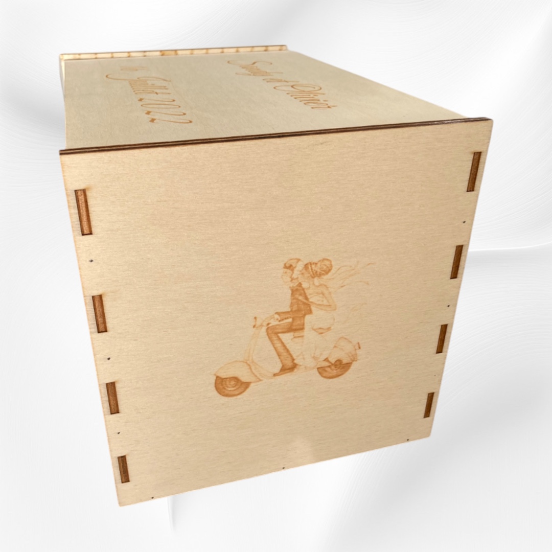 Fabriquée à partir de bois de peuplier de 3 mm d’épaisseur, cette urne est à la fois légère et résistante. Chaque pièce est découpée et assemblée avec soin pour assurer une finition impeccable. La gravure laser de haute précision permet d’inscrire les prénoms des mariés et la date avec une grande netteté, garantissant ainsi un rendu élégant et intemporel.